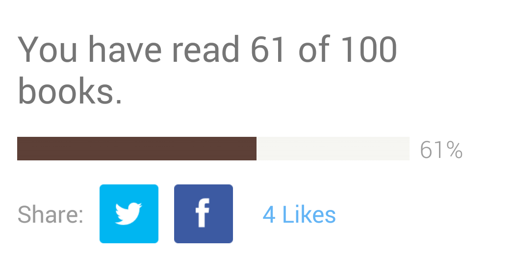 As of April 27th, 2016, I had read 34 books. Now, as the year wraps up, I’m up to 61 books. These were: