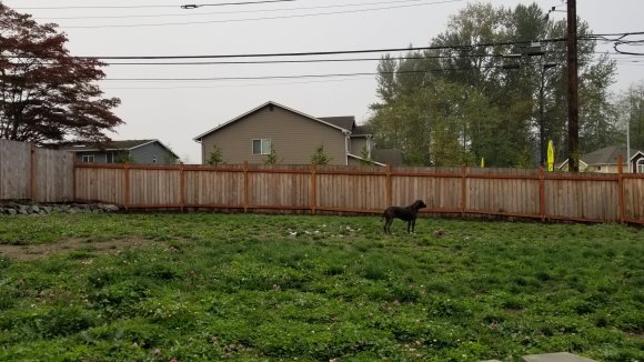 In the meantime, Zach enjoys looking at the tops, has stopped chasing people and dogs on the other side (cause the trees block them) and hasn’t lost his mind wondering what they are because he can smell them. I can’t wait to shock them full of holiday spirit. Hehe. I can’t wait to shock them full of holiday spirit. Hehe. Now all we have left is to level and grass the yard to be done with the landscaping nightmare we inherited when our builder went under.