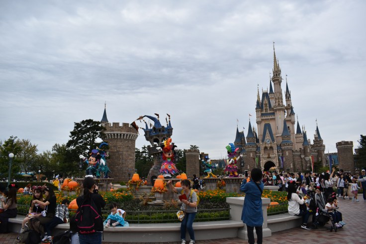 By 9 am we were pulling into the Maihama station, which is a short walk away from the ticket counters and the park’s main entrance. The train was packed with tourists, mostly Japanese, all dressed up in their best cosplay. There were Disney princesses, couples dressed up as villains, and groups wearing costumes from popular and even obscure movies and shows. If the Mouse owned it, you’d see it there. The only princess I missed seeing was Mulan, but culturally that doesn’t surprise me.