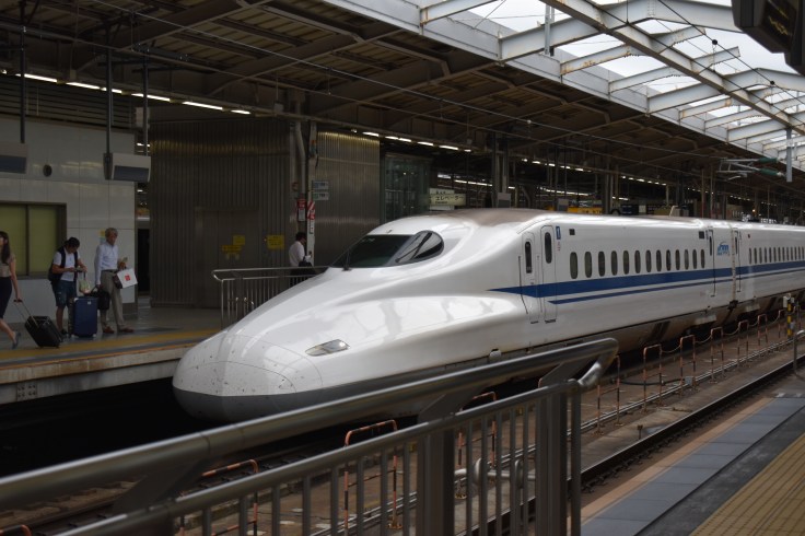 The train – the new trunk line as defined in English – sped off promptly with stops in Shin- Yokohama, Shinagawa, Nagoya, Kyoto and a couple smaller cities in between. About seven stops total. Countless countryside views, villages, cities, factories (including Daihatsu and Koito), swooshed by our windows. A little bit of rain was also deflected by the high speeds and aerodynamics giving the journey a sad yet beautiful gloom. Typhoon Tapah was on its way, passing through the west of the island, missing us by a few miles.