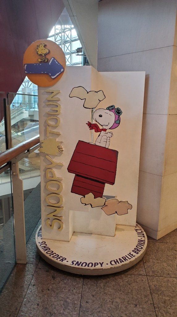 The sun was shining brightly when the Kodama engine arrived at Shin-Yokohama. We quickly made our way to the platform and jumped into the line that would take us to Sakuragicho, a couple of steps away from the Royal Park Hotel which occupies the top floors of the Landmark Tower, the second tallest building in Japan. In past trips, my coworkers would stay in this rook looking tower with views of Mount Fuji and Tokyo, in a very swanky suburb of the city, while I was stuck in the Sheraton right off the Yokohama station. The view from the 59th floor didn’t disappoint but W wasn’t impressed that easily; the overcast low visibility weather didn’t help prove why I had selected the venue in the first place. π€¦ββοΈ We laughed and recalled how the past versions of ourselves walked past the structure and went straight to the mall excited to see the Snoopy store, almost 12 years ago.