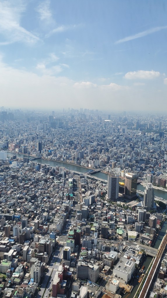 We spent two hours gawking down at Tokyo residents and businesses. The day’s smog cleared a bit but not enough to spot Yokohama or Fuji. High up among the clouds, you could take in the hustle and bustle of the neighborhoods. Kids playing soccer. Trucks making deliveries. Rugby fans taking in the sights. Suspended in time, I enjoyed the view from hundreds of meters in the air, grateful for the chance to witness such an impressive feat of engineering and architecture. People like us, enginerds, had made this building a reality with hard work, grit and resilience. Inspiring and enviable.