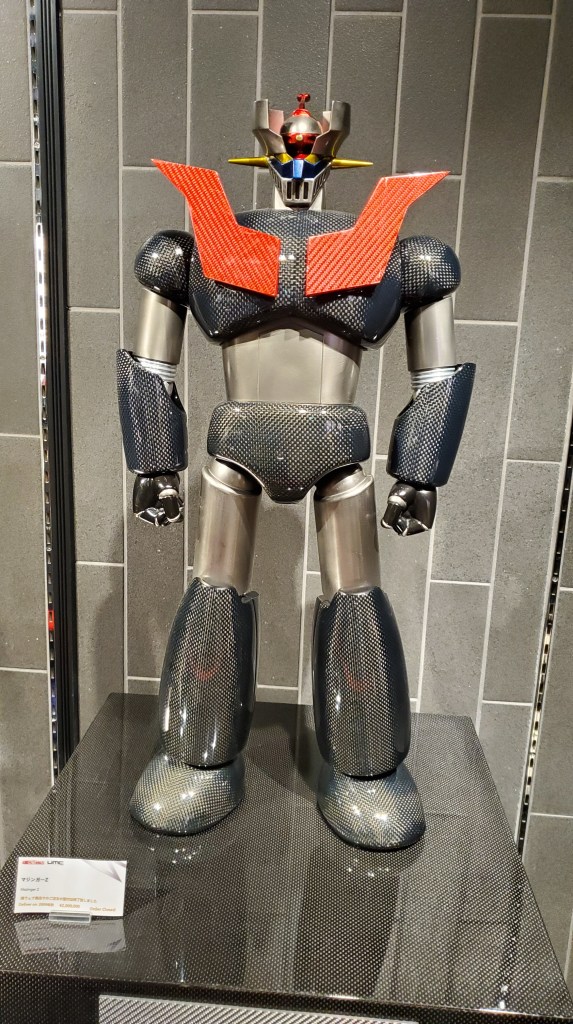 W made a note to order an action figure from their website for Christmas, so hopefully he can make up his mind by then. The one he bought me back in 2014, from a consignment store, had seen better days and wasn’t as detailed and stocky as the ones displayed. The Mazinger Soul of Chogokin seen here is an example of the craftsmanship of the “toys” inside the show cases. An excellent geek/nerd souvenir if you ask me. Can’t wait to upgrade and display the carbon fiber and metal articulating figure. Just thinking about it makes me happy.